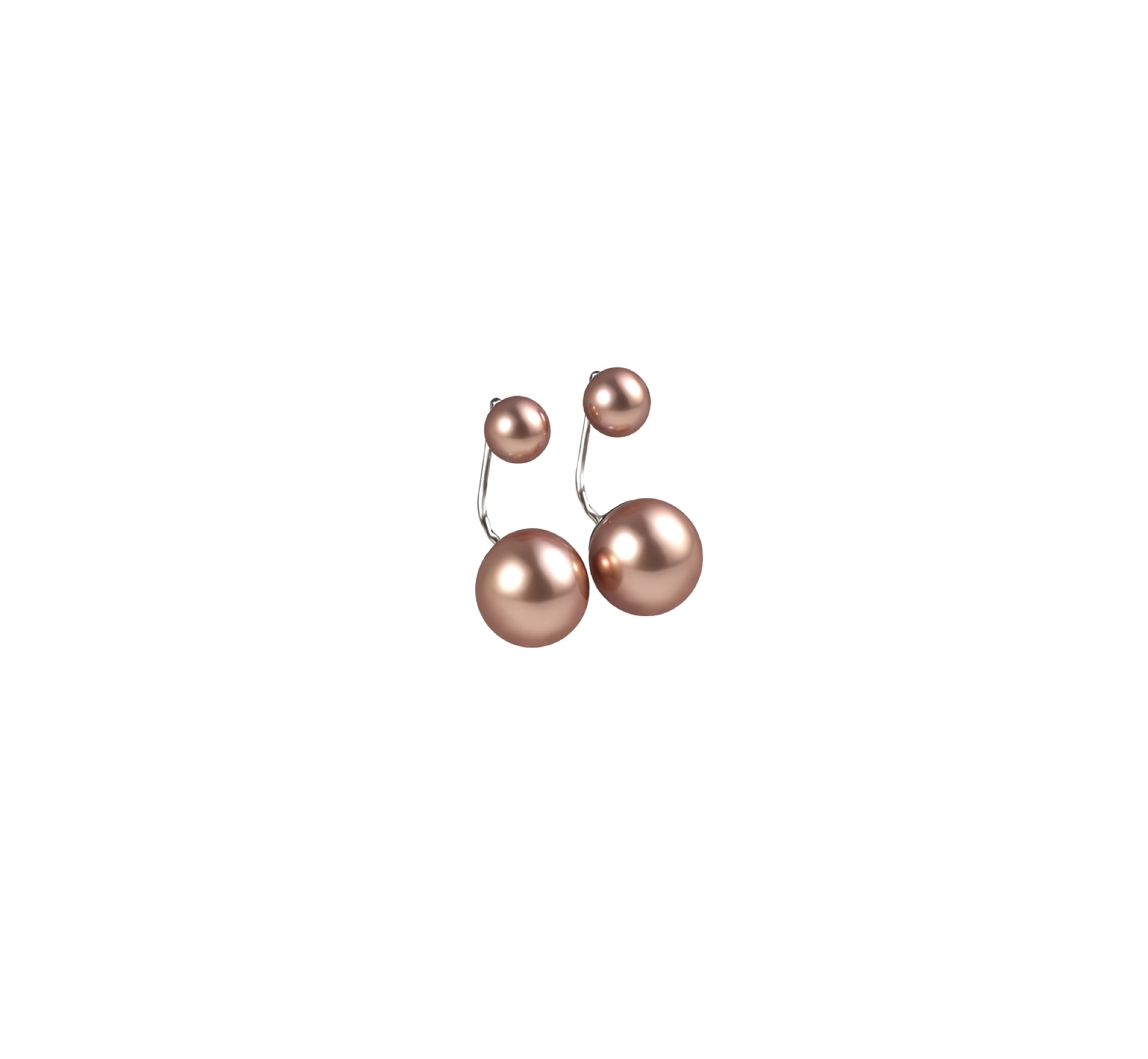 Kõrvarõngad teeb eriliseks paigutus kõrvas. Väiksem pärl jääb kõrva peale asetusega, suurem suunaga kõrva tagant ette.