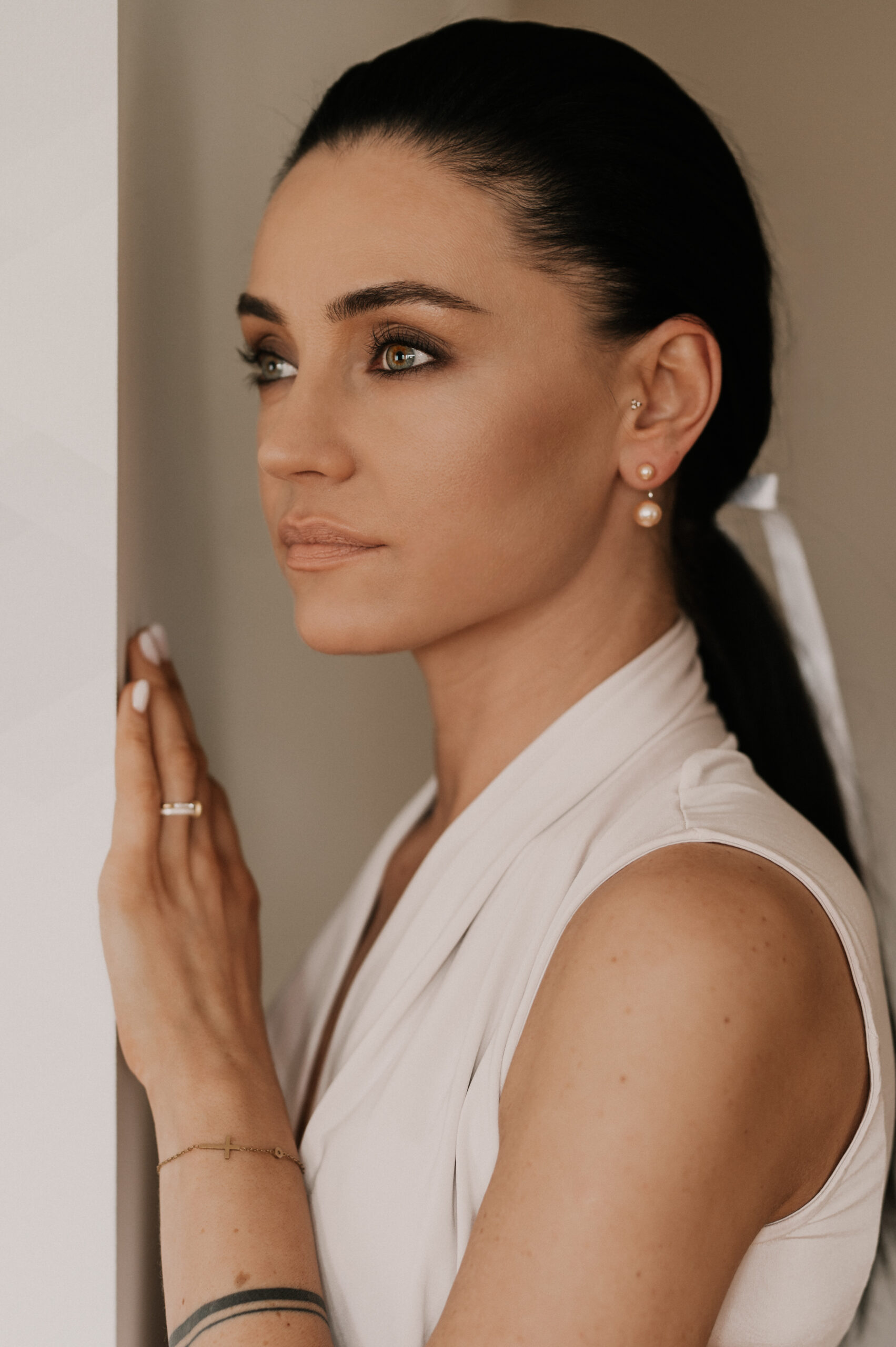Kõrvarõngad teeb eriliseks paigutus kõrvas. Väiksem pärl jääb kõrva peale asetusega, suurem suunaga kõrva tagant ette.