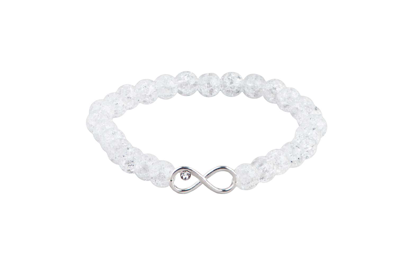 Poolvääriskividega käeehe – mäekristall. Mäekristall puhastab, maandab ja tervendab. Käeehet kaunistab Ag925 sterling hõbedane lõpmatuse sümbol ja kristall.