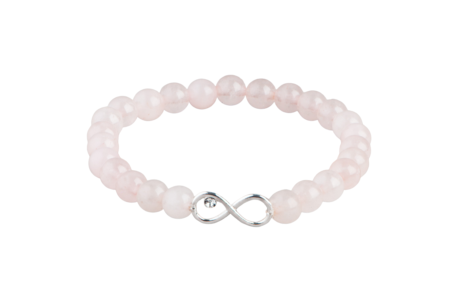 Poolvääriskividega käeehe – armastusekivi roosa kvarts. Käeehet kaunistab Ag925 sterling hõbedane lõpmatuse sümbol ja kristall.